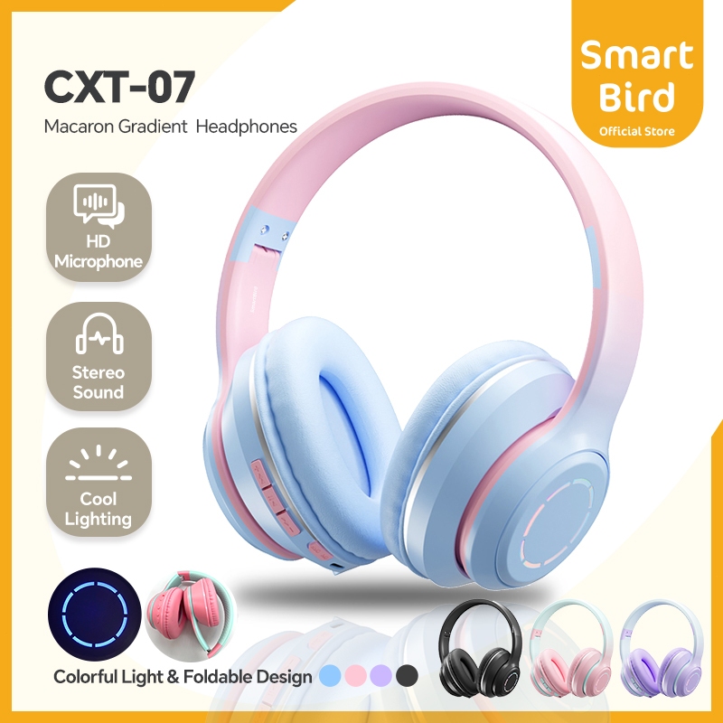 SmartBird Headphone CXT-07 Gradient Color Bluetooth Wireless Headset Stereo Hifi Sound Music Game RGB LED Light Earphone Can talk
