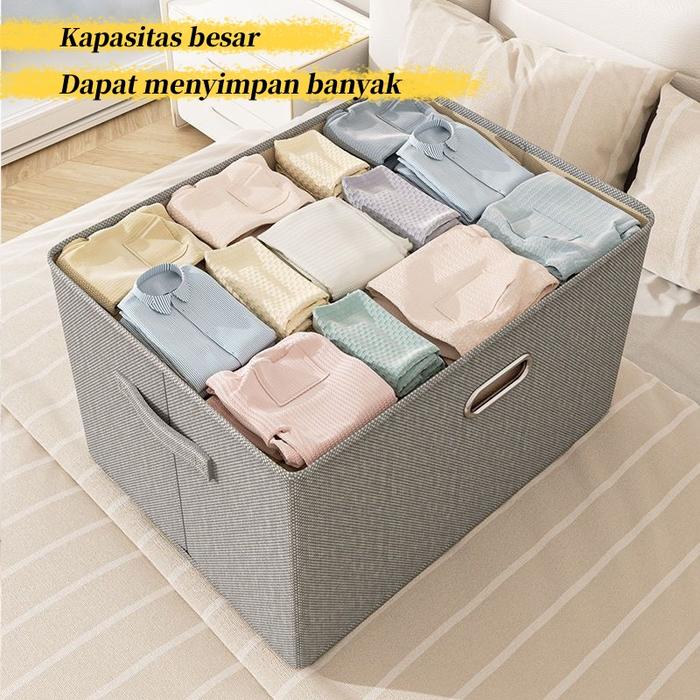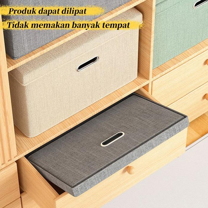 RUMAH & ASRAMA KOTAK PENYIMPANAN MAINAN/KONTAINER BOX SERBA-SERBI/STORAGE BOX PAKAIAN/KOTAK BUKU/ LIPAT CONTAINER BOX BAHAN LINEN - 14L/ABU-ABU