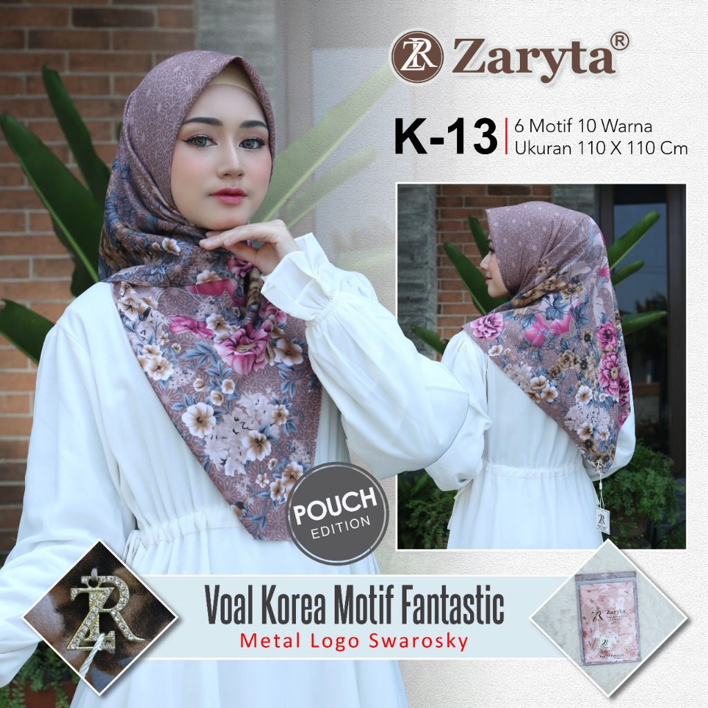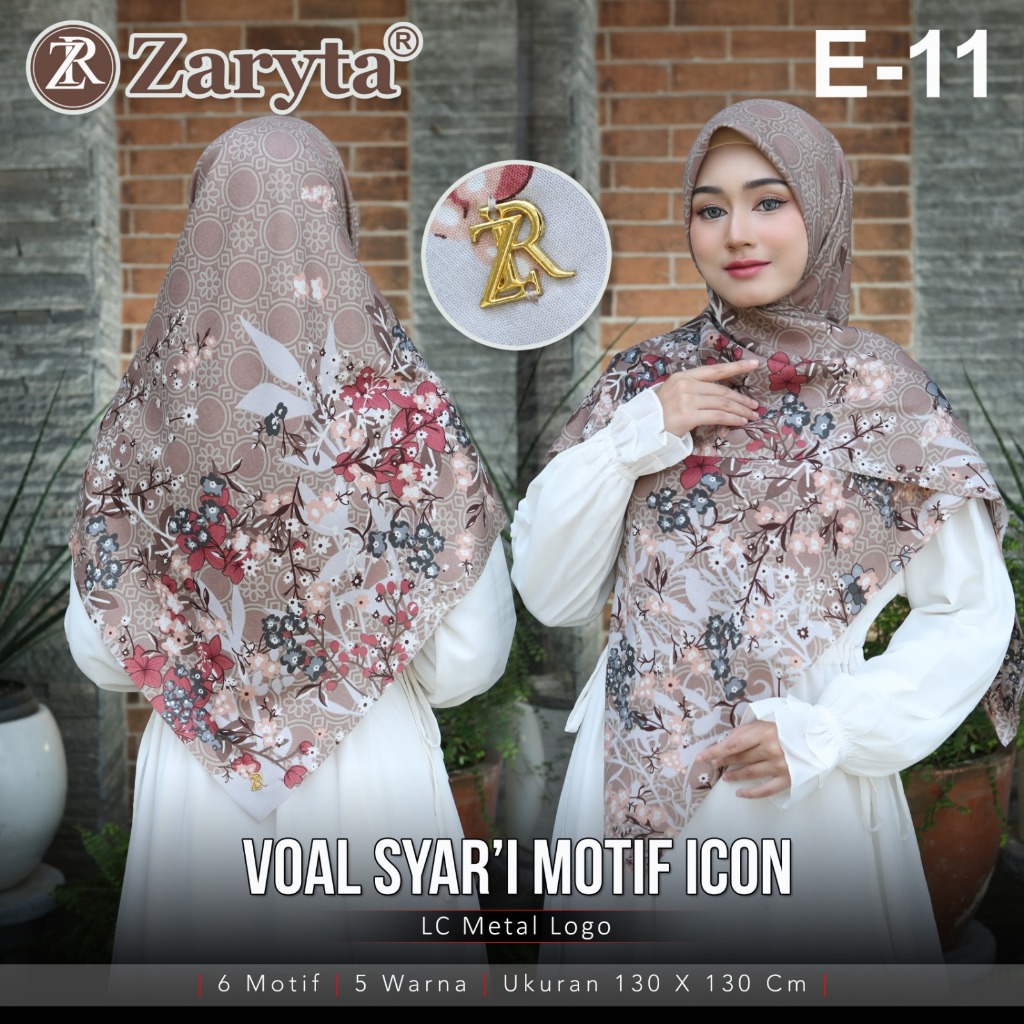 Kerudung Segi Empat Hijab Voal Motif Pouch Metal Logo Gold Swarovski Laser Cut Standart 110X110Cm