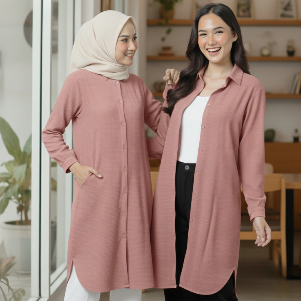 Kemeja Panjang Tunik Kancing Bahan Adem Airflow Bahan Crinkle - Yessa By.Reii Blouse Studio Kemeja Panjang Tunik Kancing Bahan Adem Airflow Bahan Crinkle - Yessa By.Reii Blouse Studio