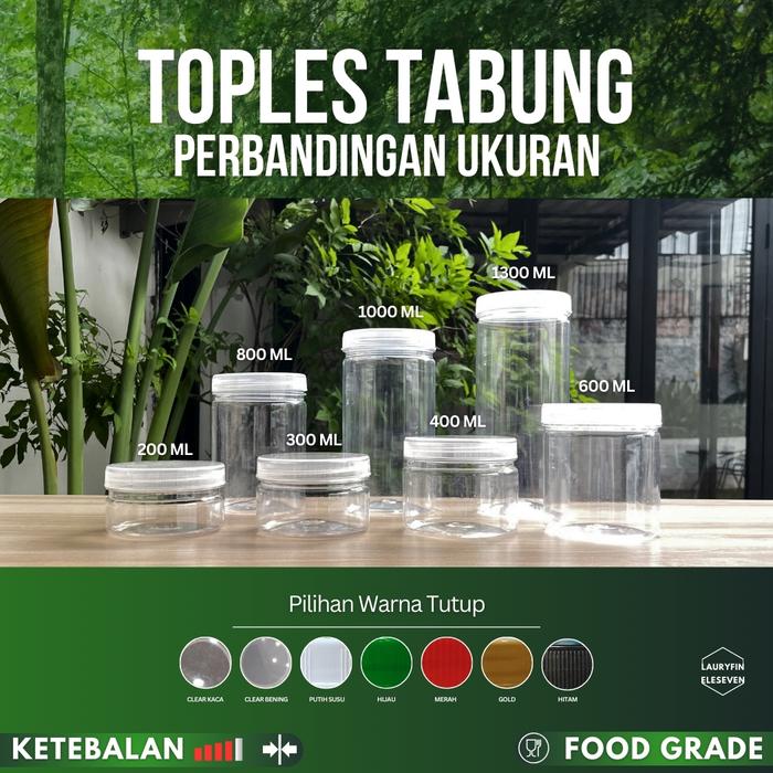 ISI 60 PCS TOPLES TEBAL TABUNG SILINDER 400 ML / TOPLES PLASTIK 350 - 400 ML / TOPLES KUE SNACK - CLEAR KACA, ISI 30 PCS PACK PLASTIK