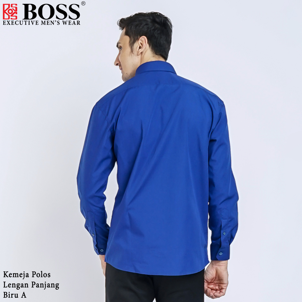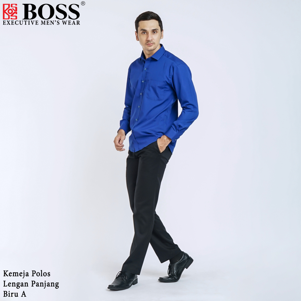 Kemeja Polos Pria Lengan Panjang Atasan Hem Kantor Cowok Regularslim Fit Biru Muda Elektrik A