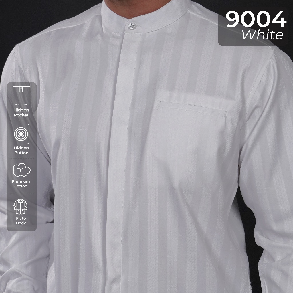 Baju Koko Pria Lengan Panjang Premium Vertical White Koko Elegant Musa Lengan Panjang