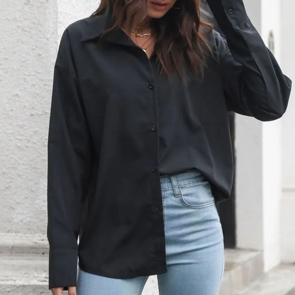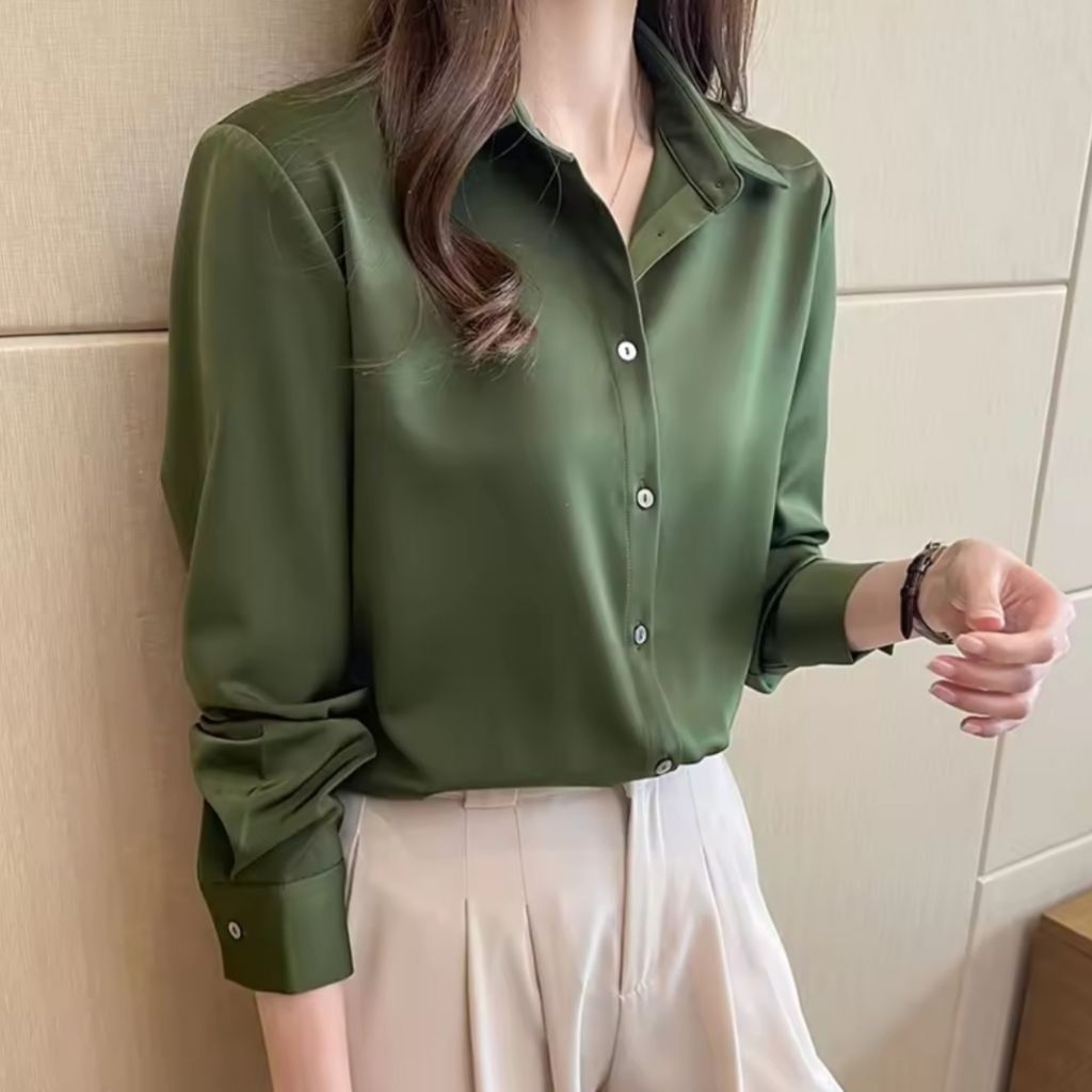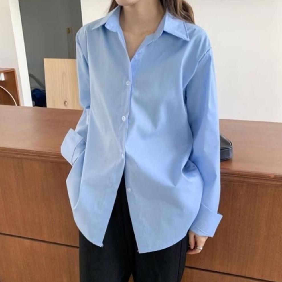 Kemeja Wanita Katun Basic Lengan Panjang Kasual Hitam Putih Navy Biru Muda Army Pink Atasan Wanita Kerja