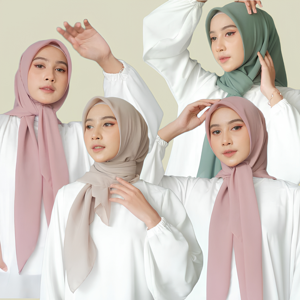 Kerudung Segiempat Hijab Paris Polos No Label Gratis Pouch Varisha