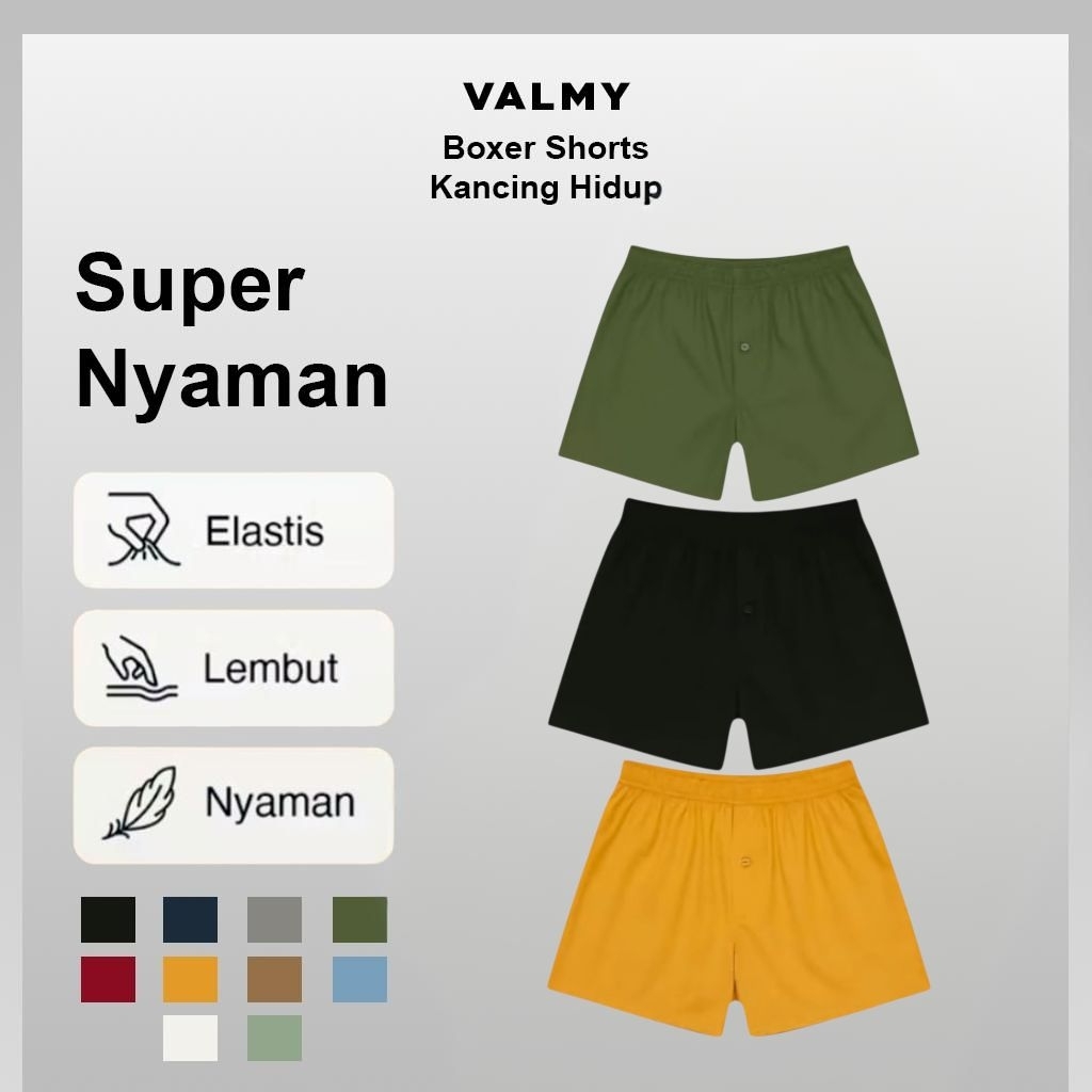 Celana Boxer Pria Celana Boxer Pendek Polos Bahan Katun Melar Kolor Pria