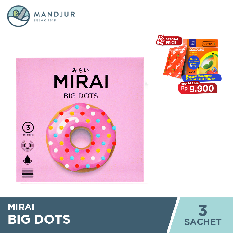 Kondom Mirai Big Dots 3 Pcs - Tekstur Berbintik Lebih Besar dan Lebar
