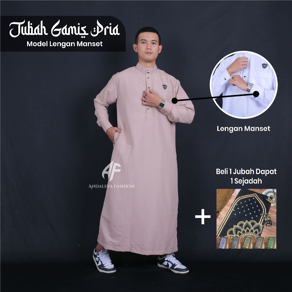 Jubah Gamis Muslim Pria Remaja Dewasa Kancing Sultan Lengan Manset Dapat 1 Sejadah