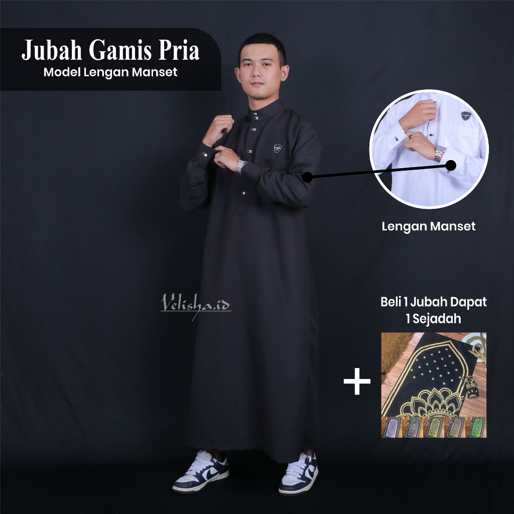 Jubah Gamis Muslim Pria Remaja Dewasa Lengan Manset Kekinian Elegant Dapat 1 Sejadah