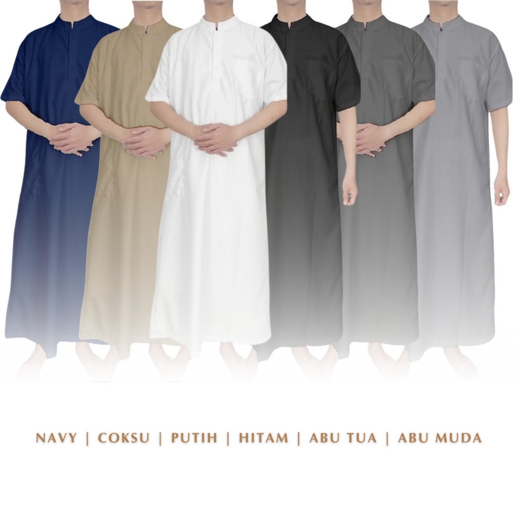 Gamis Jubah Pria Cowok Laki Katun Toyobo Putih Hitam Abu Navy Cokelat Lengan Pendek Premium Polos