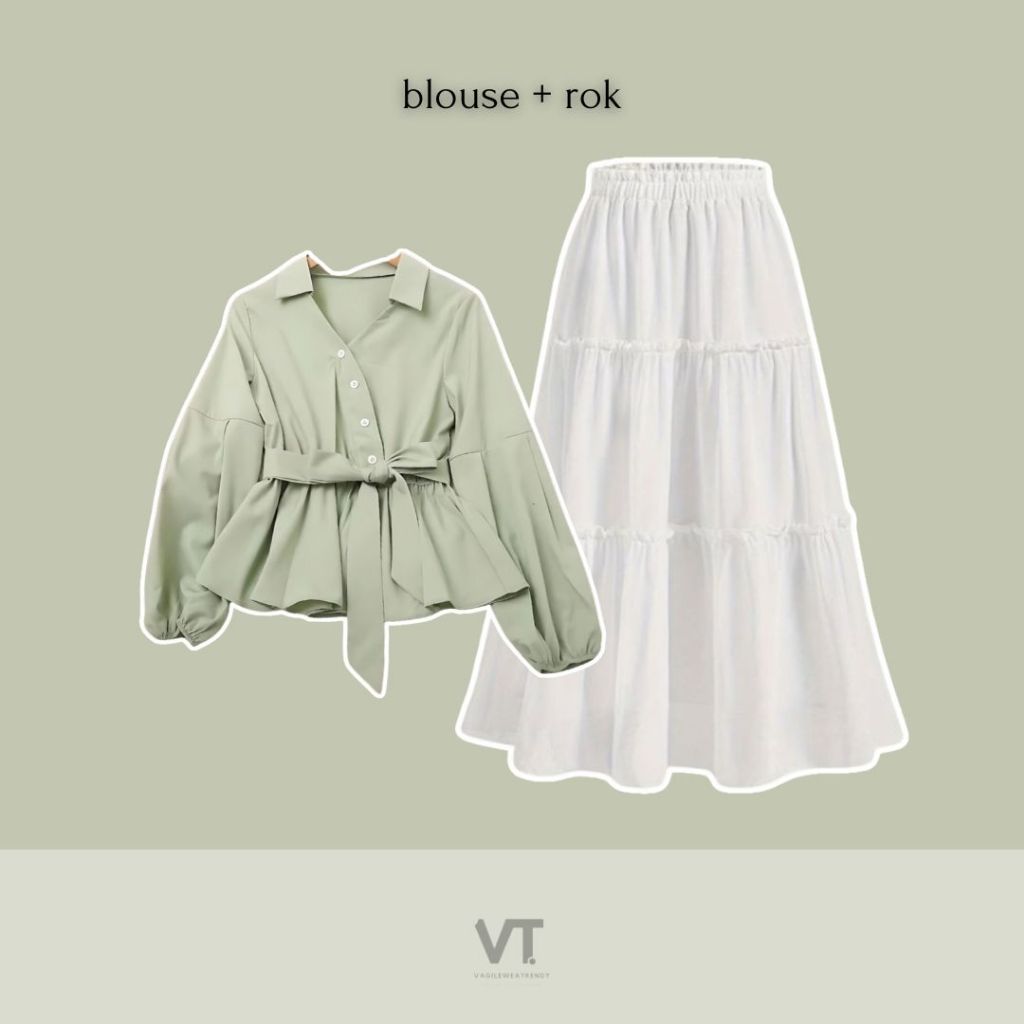 One Set Mery Hijab Blouse Rok Setelan Baju Wanita Hijab Ootd Korea