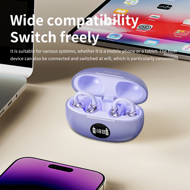 Supernova x Lenovo ERAZER EX332 ENC LED Open-Ear Wireless Bluetooth Earphone OWS IPX5 Waterproof Ear Clip Headset