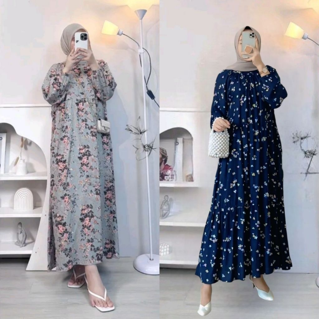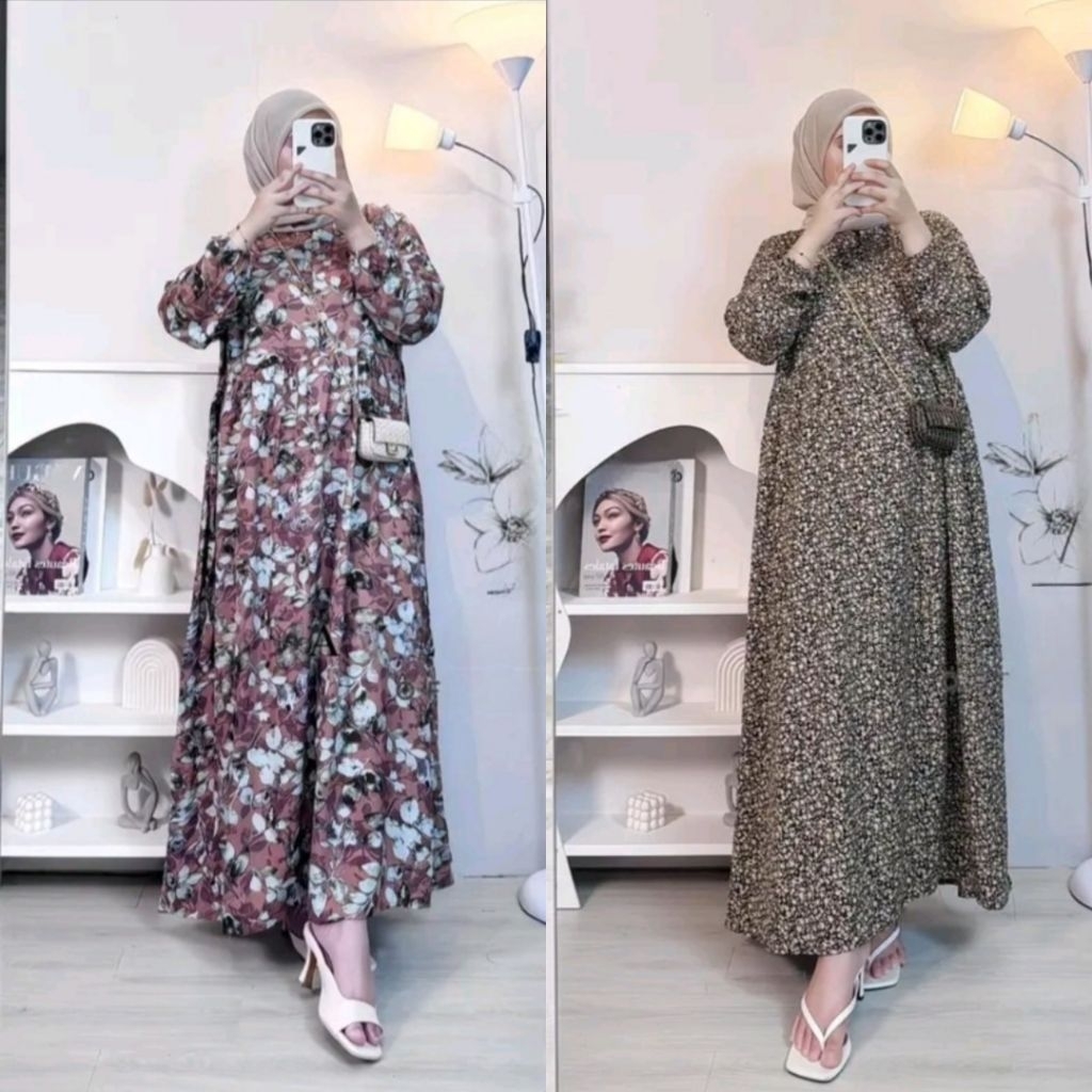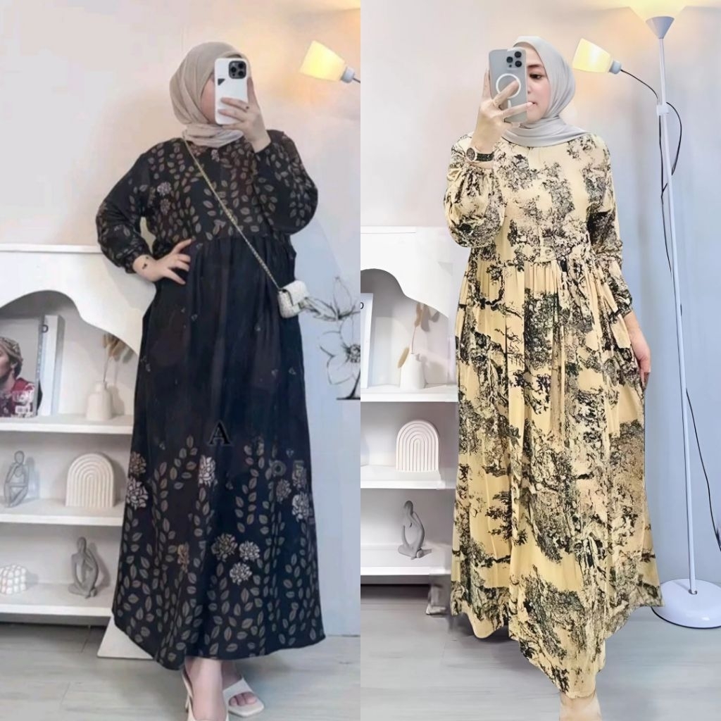 Arsy Midi Dress Gamis Rayon Motif Terlarisaju Lebaran Busana Muslim Wanita Terbaru Banyak Motif Kekinian Murah