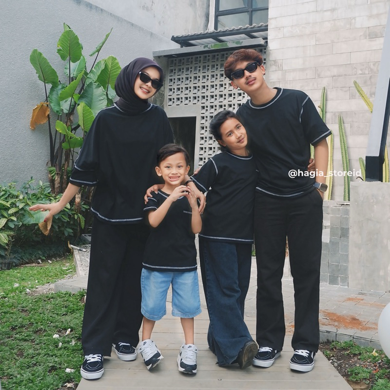 Pakaian Set Couple Family By Hagia Couple Keluarga Dengan Model Kombinasi Jahit Luar