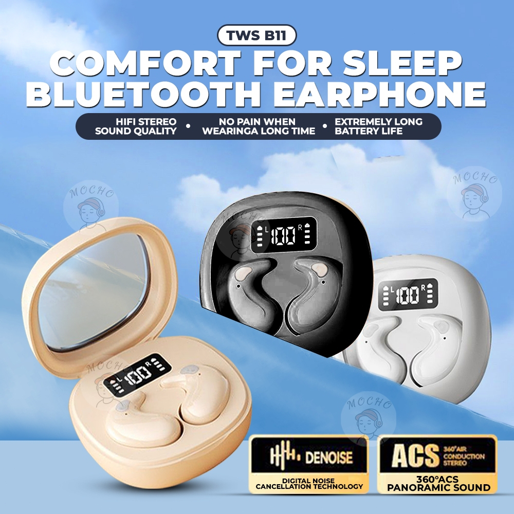 Mochoe B11 Headset Bluetooth Sleeping Earphone 5.4 True Wireless With Mic Button Control Sleep TWS Noise Reduction Waterproof