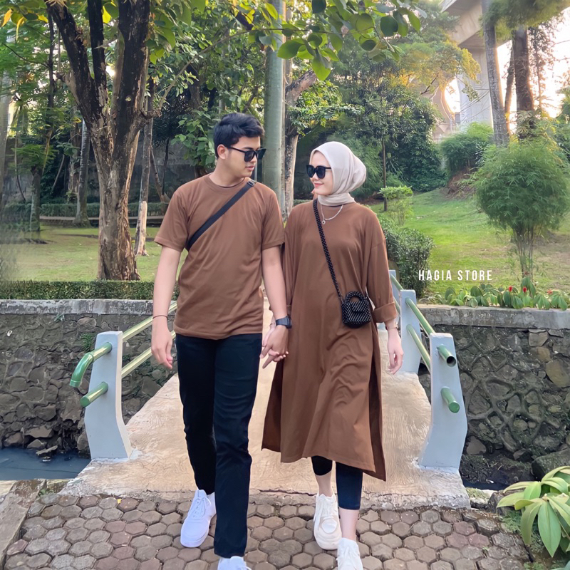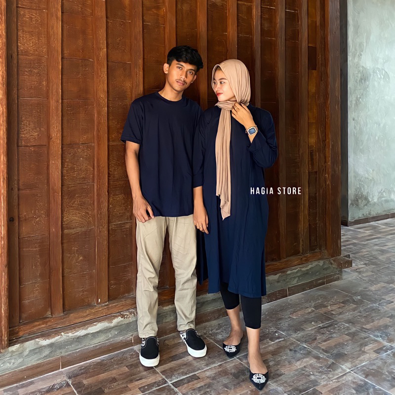 Baju Pria Wanita Setelan Pakaian Set Sudah Couple Tunik Dan Kaos Pria Bahan Cotton Combed Super Adem