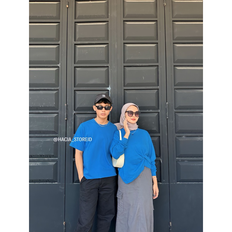 Baju Pria Wanita Setelan Pakaian Set Sudah Sepasang Blouse Crop Dan Kaos Polos Pria