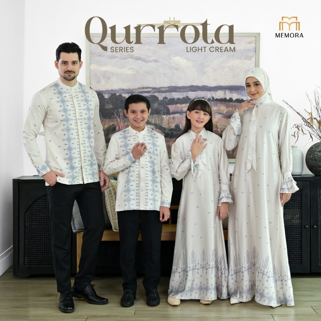 Sarimbit Lebaran Series Qurrota Light Cream Baju Lebaran Couple Keluarga Baju Couple Pasangan Lebaran