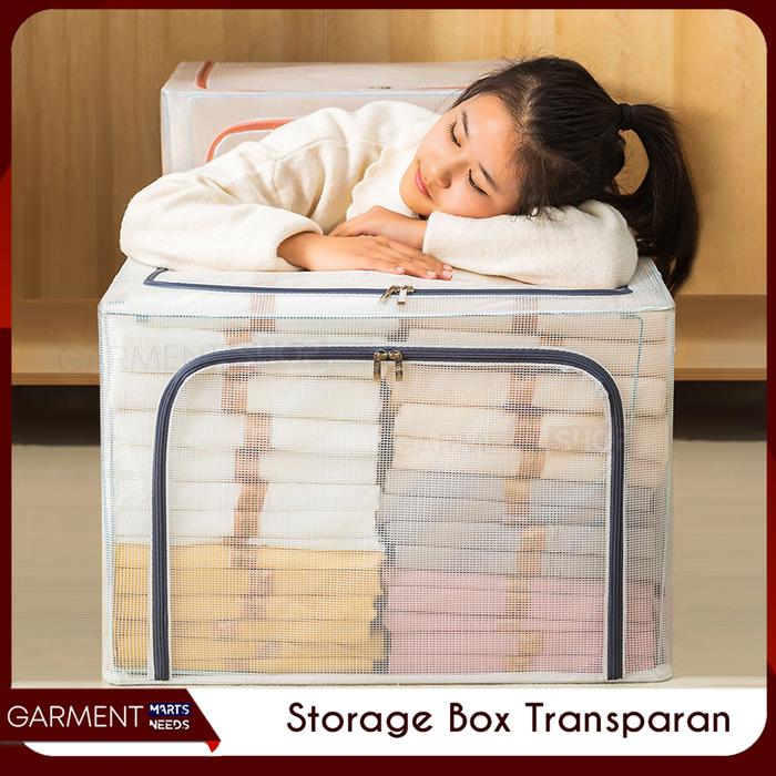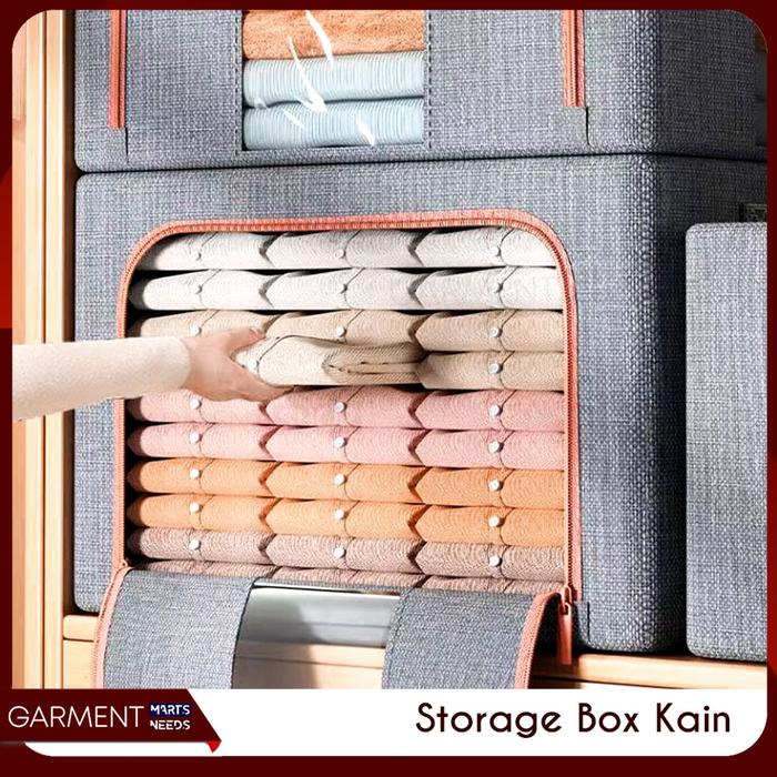 KOTAK LIPAT PENYIMPAN PAKAIAN SELIMUT BONEKA MAINAN BOX SERBAGUNA TAHAN LEMBAB BOX BESAR ORANIZER FRAME BAJA DOUBLE ZIPPER PREMIUM QUALITY - HIJAU - COTTON, SEDANG 24L
