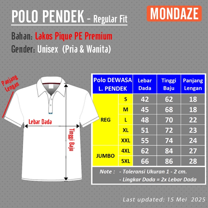 Polo Pendek - Pria Wanita Kerah Polos Mondaze Polo PENDEK - Pria Wanita Kerah Polos Mondaze