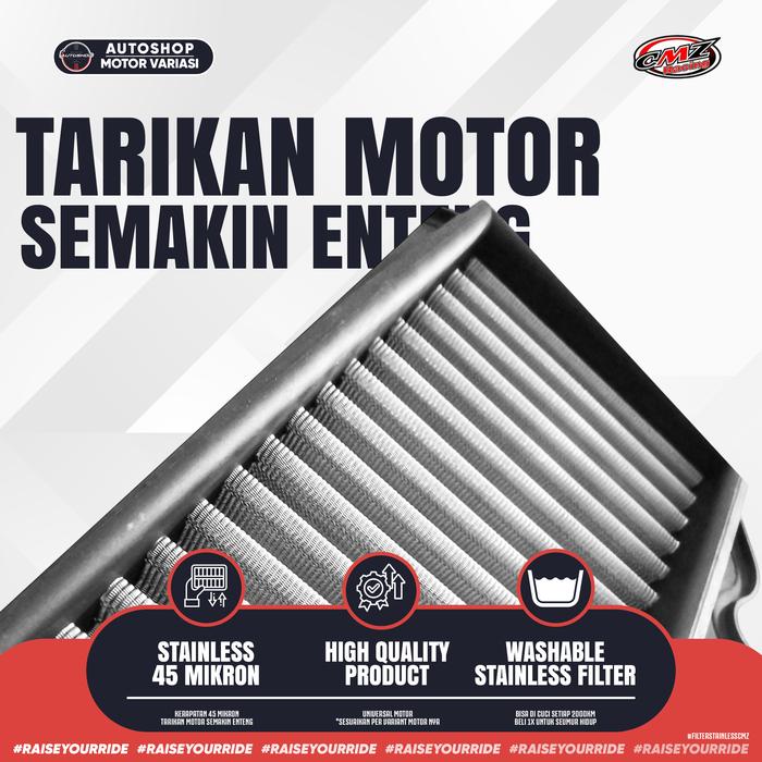 FILTER UDARA STAINLESS 45 MIKRON BEAT F1 VARIO 125/150 160 PCX 160 NMAX NEW RACING DICUCI - BEAT/VARIO110/SCOOPY