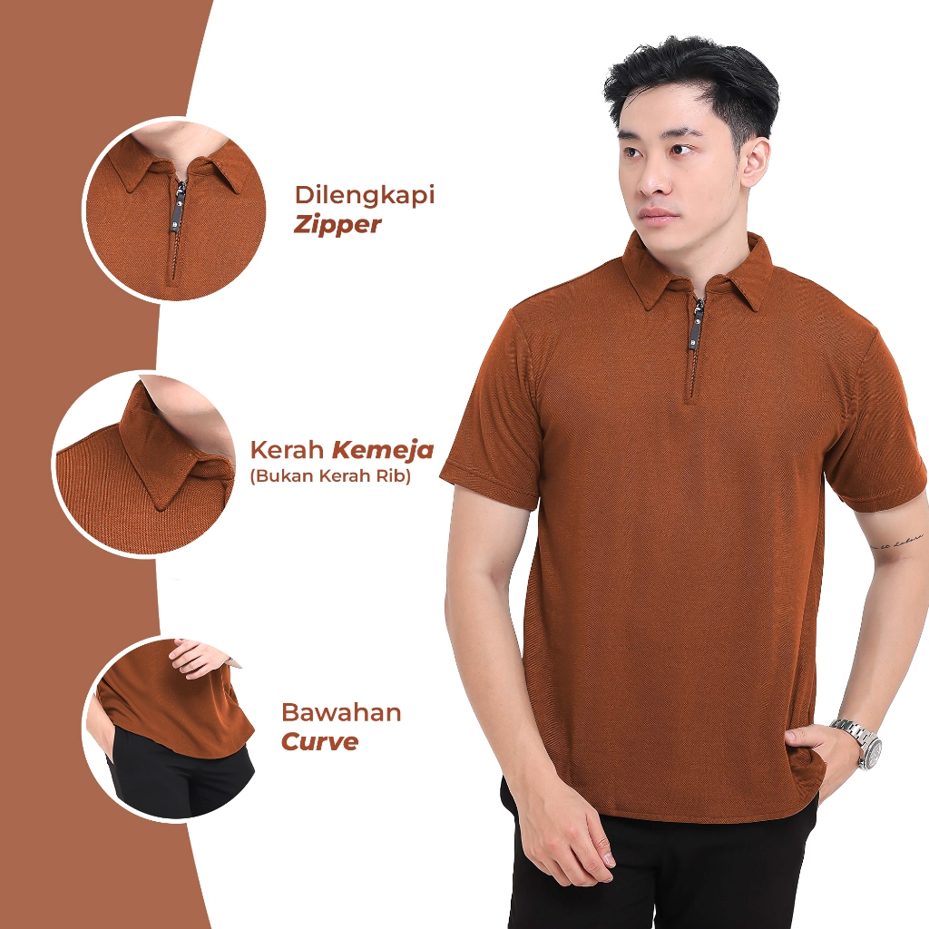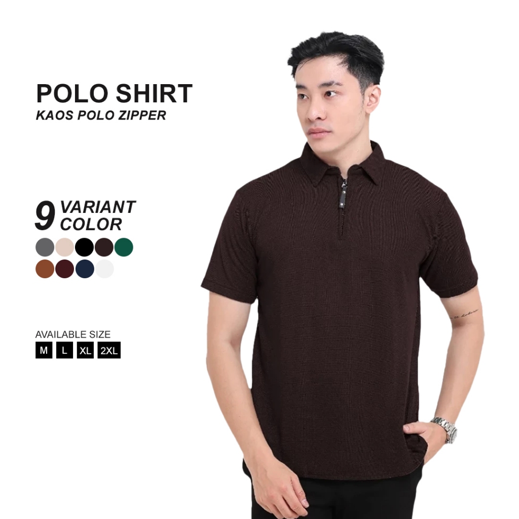 Kaos Polo Shirt Pria Kerah Lengan Pendek Zipper - Dark Brown Broguy Kaos Polo Shirt Pria Kerah Lengan Pendek Zipper - Dark Brown BROGUY