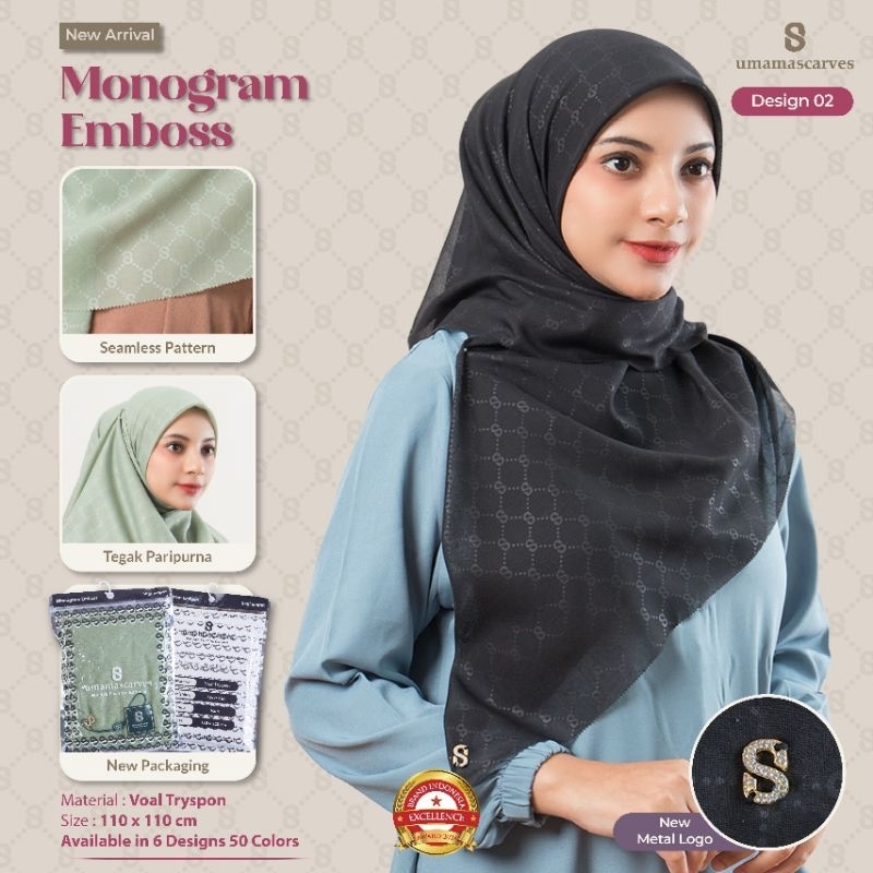 Hijab Segiempat Tryspan Motif Embos Logo S Diamond Swarovsky New Arrival Jilbab Segiempat Terbaru