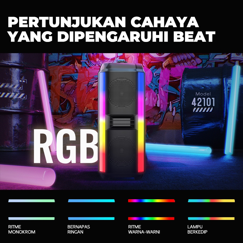 MAlKET Speaker Bluetooth Karaoke Super bass Subwoofer 2Mic Wireless USB/FM/AUX/RGB Garansi 3 tahun