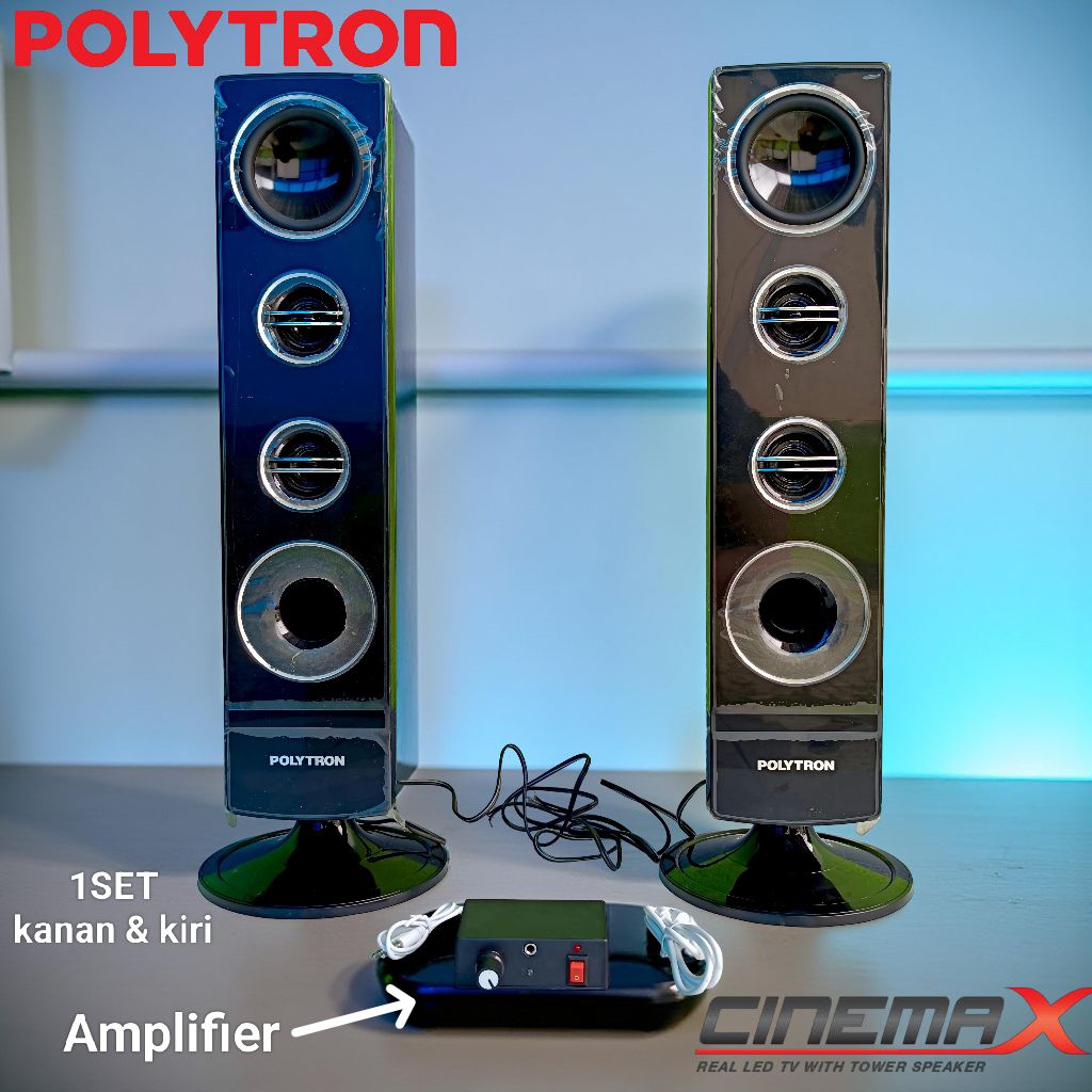 Speaker Aktif lytron Cinemax Universal untuk semua jenis TV LED semua Merek Semua ukuran. 1SET Speaker Tower & Amplifier 5volt + Kabel USB + kabel AUX 3.5mm