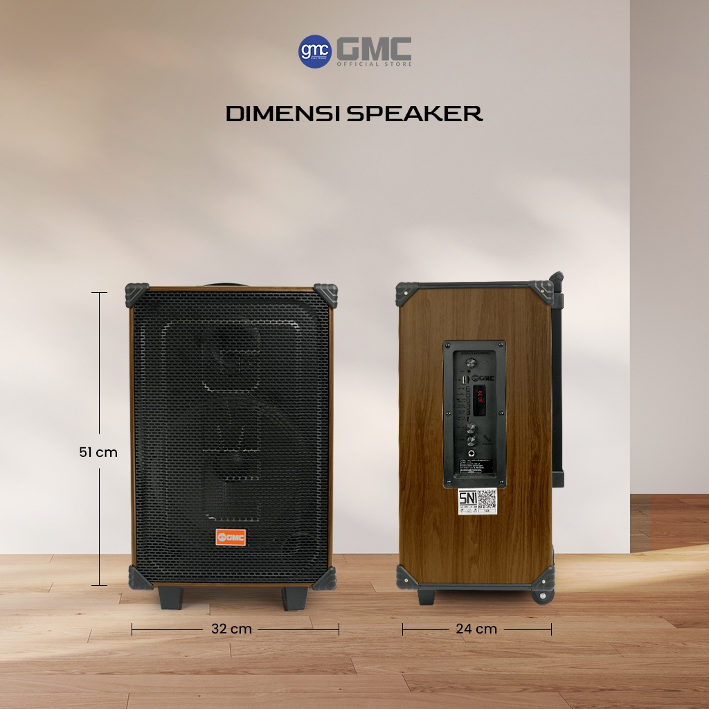 GMC Speaker 883L – Speaker Karaoke Bluetooth 10” – 115W, Gratis Mic Wireless, USB, SD, AV In