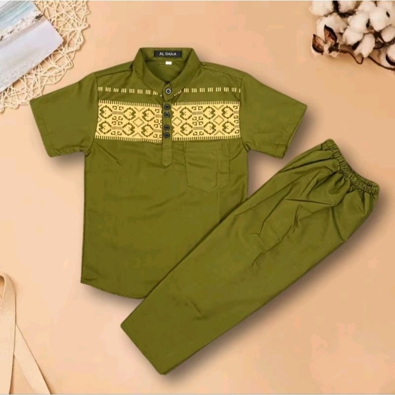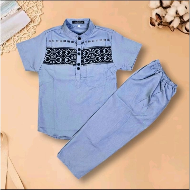 Setelan Baju Koko Anak Laki-Laki Usia 1 Tahun - 5 Tahun Koko Pendek Kombinasi Songket Batik Bahan Katun Toyobo Terlaris Dan Terbaru Lebaran 2025 Kurta