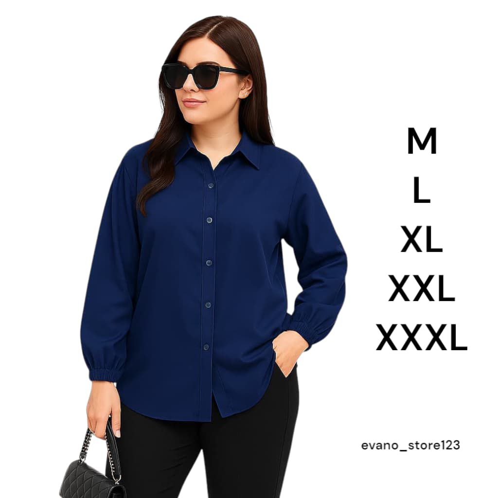 Kemeja Wanita Jumbo Rayon Twill Premium - Blouse Polos Adem M-Xxxl Busui Friendly