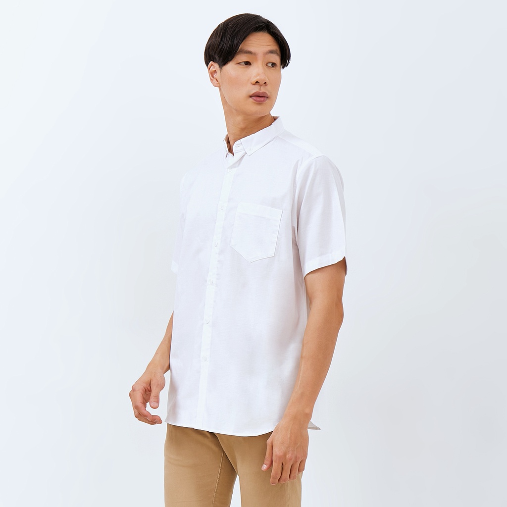 Kemeja Pria Basic Polos Oxford Pendek Putih 1457T