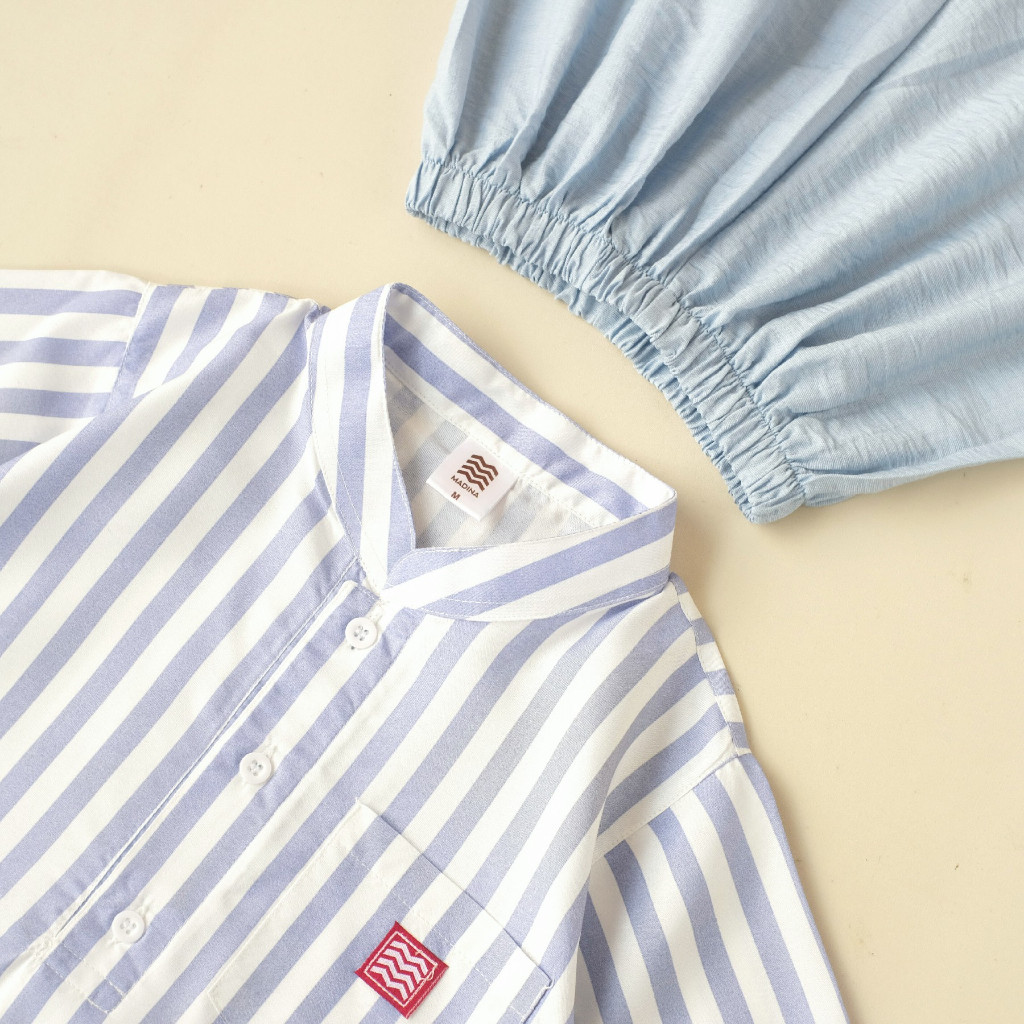 Baju Couple Koko Anak Laki Laki & Dress Anak Perempuan 1-12 Tahun Motif Salur Stripe
