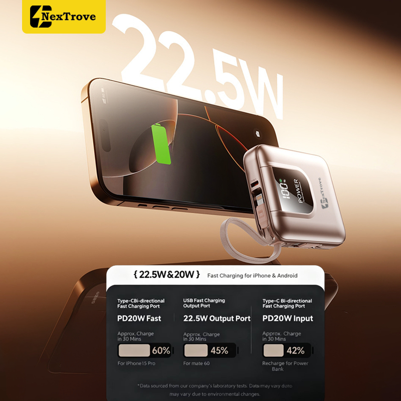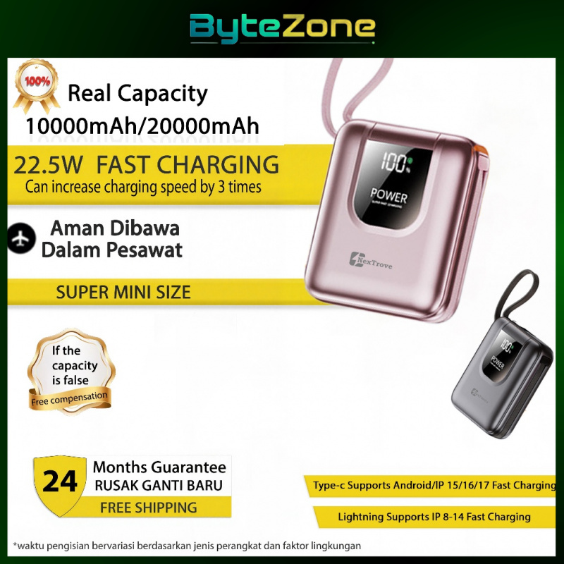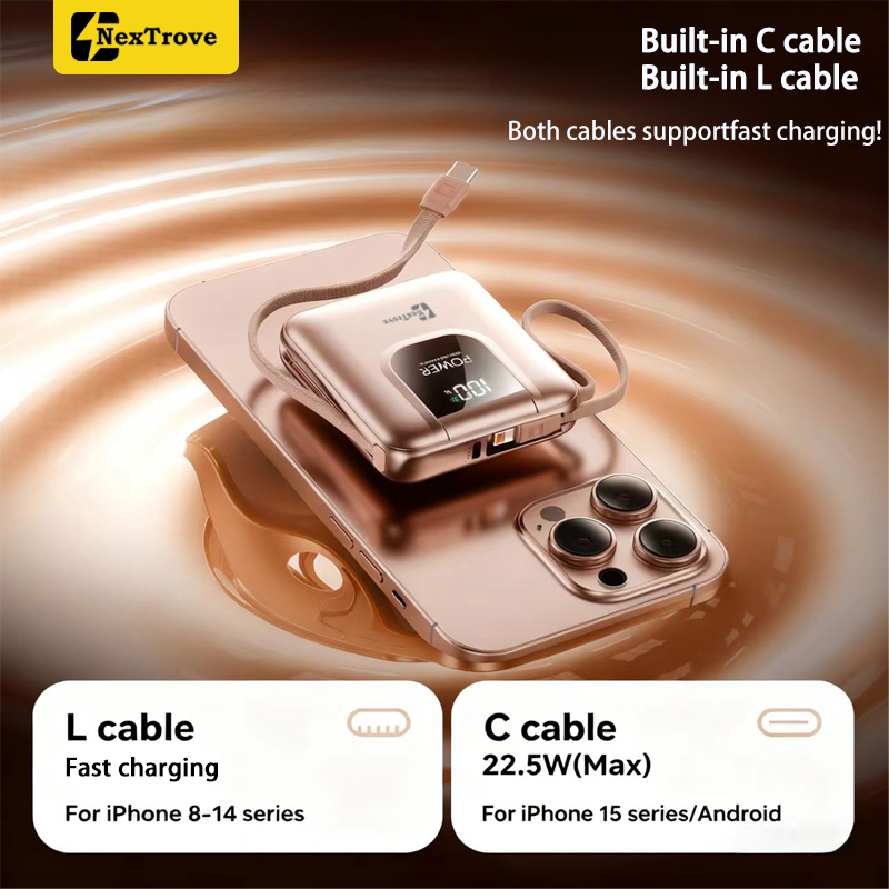 [Mall] NexTrove N7 Powerbank 20000mAh, 22.5W Fast Charging, Kabel Built-in Type-C & Lightning✨