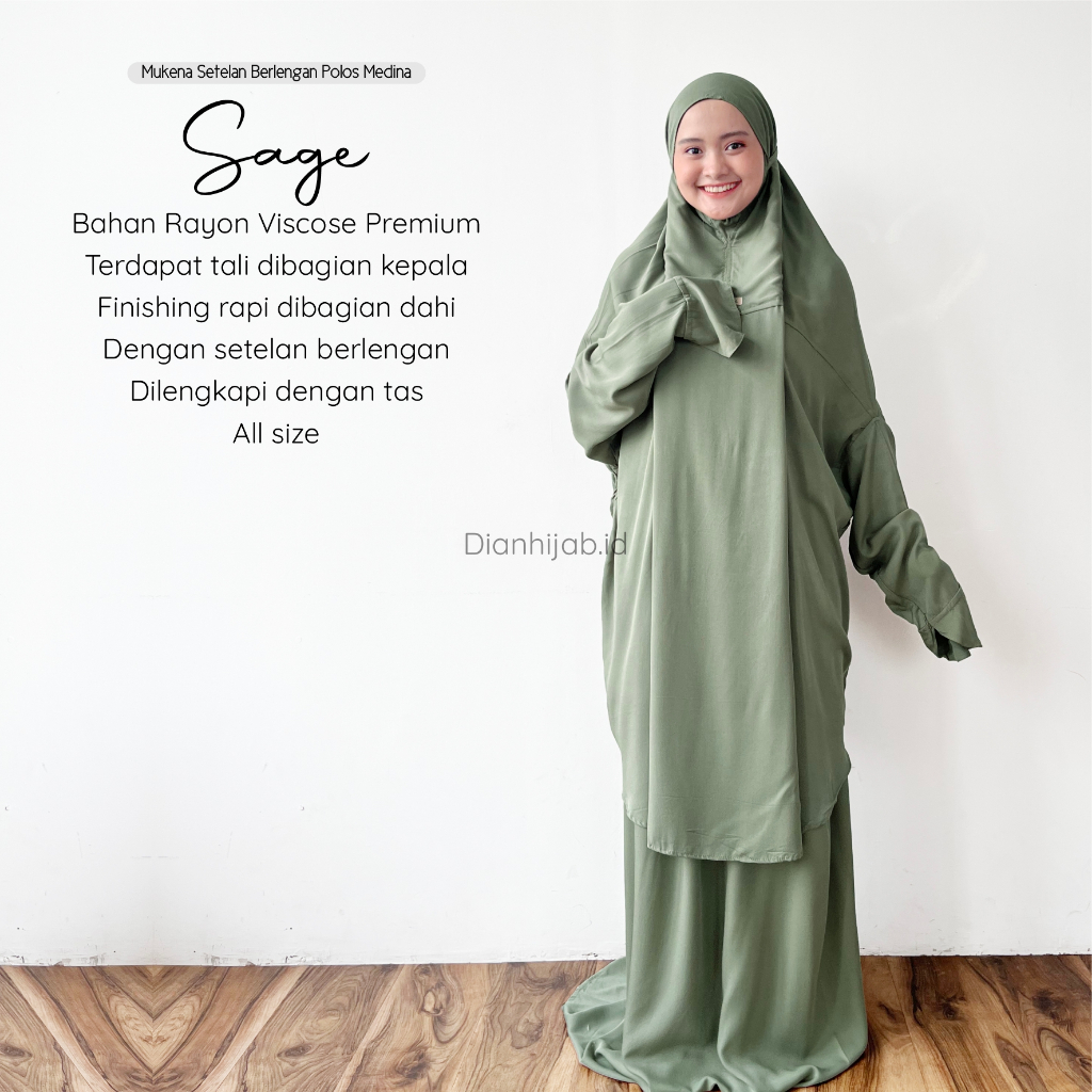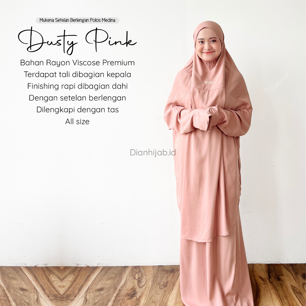Mukena Setelan Berlengan Dewasa Medina Polos By Dianhijab.Id - Bahan Rayon Viscose Adem Bisa