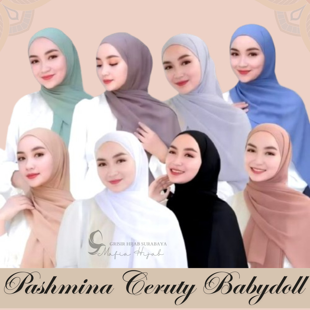 Pashmina Ceruty Babydoll Premium 75×175 Cm 40 Warna Hijab Jilbab Pasmina