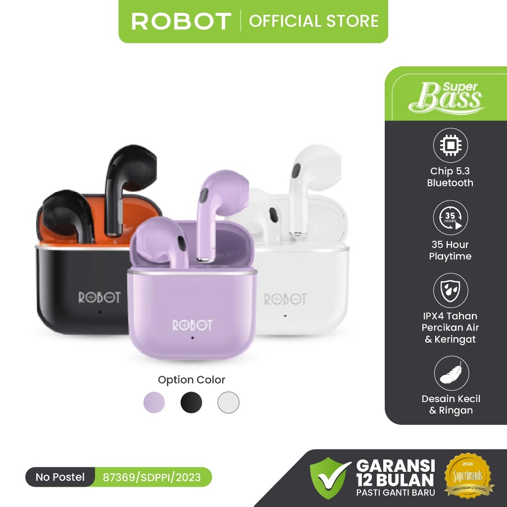 AULA X ROBOT Earphone Wireless Earbud TWS Bluetooth Headset Tahan Air Keringat BT 5.3 T50S Waterproof IPX4 Semi-In-Ear Original Garansi 1 Tahun