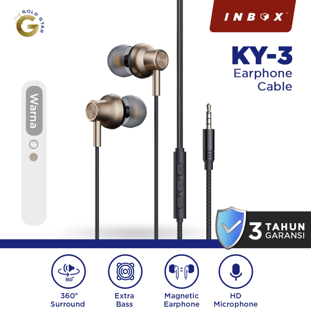 Inbox KY-3 Headset Earphone Magnetic Extra Bass 3.5mm dengan Microphone dan Volume Control