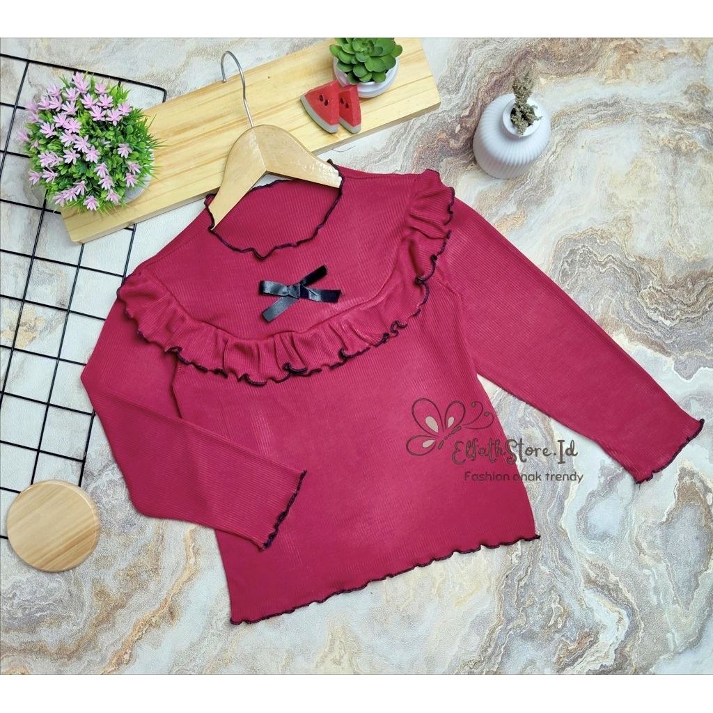 Atasan Ruffle Pita Baju Anak Perempuan Rib Knite Premium 1-6 Tahun