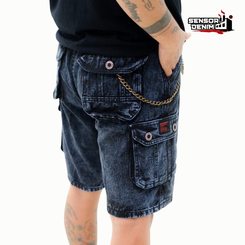 Celana Jeans Cargo Pendek Pria Washing Snow