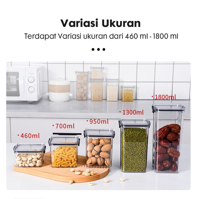 TOPLES KOTAK MAKANAN SNACK PENYIMPANAN KEDAP UDARA WARNA ANTI BOCOR ACRYLIC KULKAS PUTIH - HITAM - S