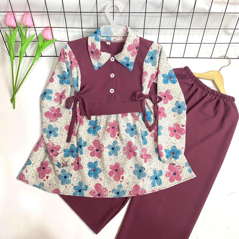 Setelan Anak Azura Kekinian Bunga Crinkle 2-12Thn