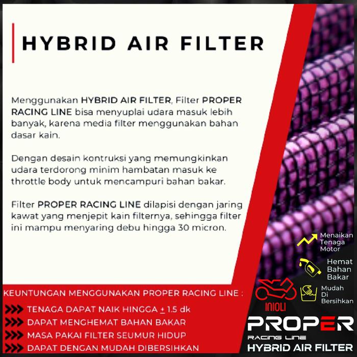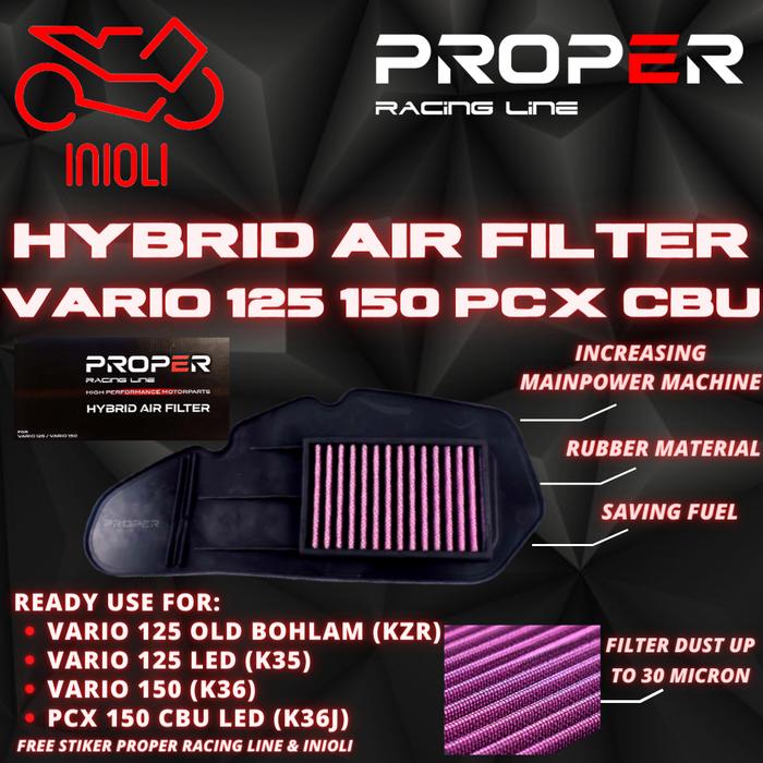FILTER UDARA PROPER RACING LINE VARIO 125 VARIO 150 PCX 150 CBU LED FI ESP KZR K35 K36 K36J HYBRID AIR FILTER SARINGAN UDARA MOTOR