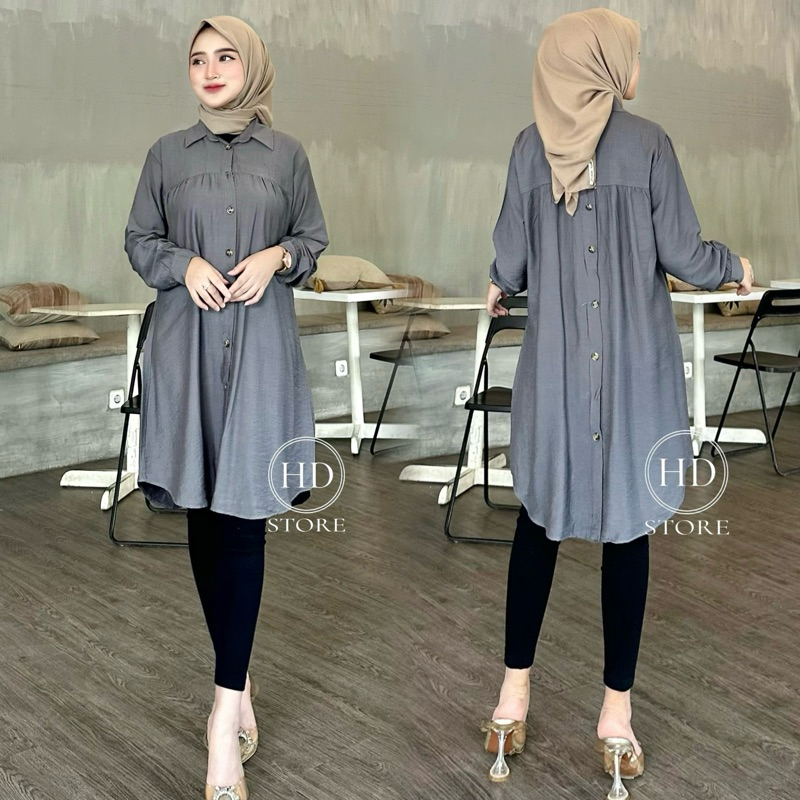Zeya Tunik Polos Polo Linen || Atasan Wanita Kemeja Basic Kancing Depan Belakang Zeya Tunik Polos Polo Linen || Atasan Wanita Kemeja Basic Kancing Depan Belakang