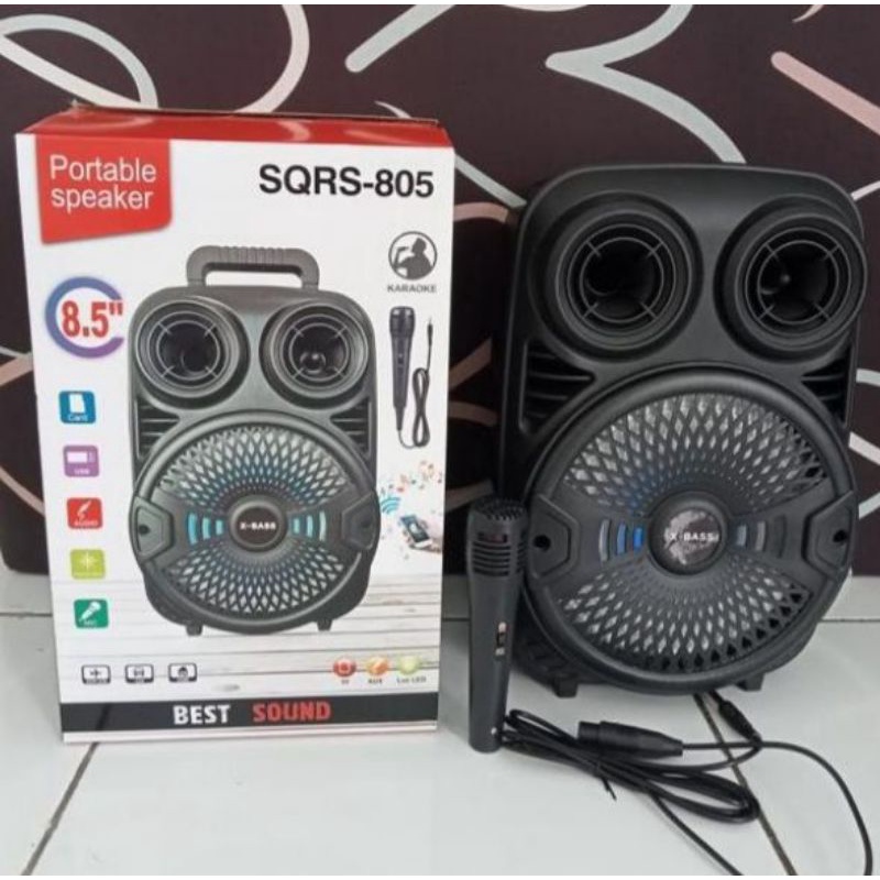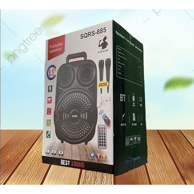 Speaker Bluetooth 8,5Inchi SQRS 885 Bonus 2 Microphone /Speaker Wireless Radio fm/Salon Aktif Super Bass Best Sound/Speaker rtable 8,5 Inchi aktif Speaker