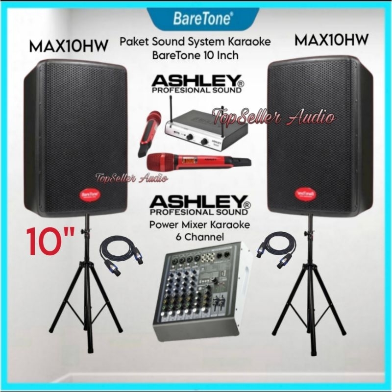 Paket Sound System Karaoke Speaker 10 Inch BareTone Original wer Mixer Ashley 6 Channel Mic Wireless Ashley Komplit Garansi Resmi