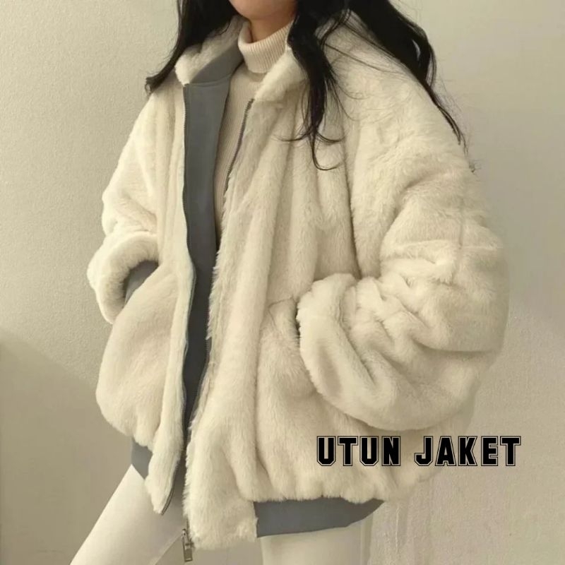Jaket Wanita Musim Dingin Hoodie Bulu Tebal Terbaru Jaket Cewek Parasut Jaket Bulak Balik