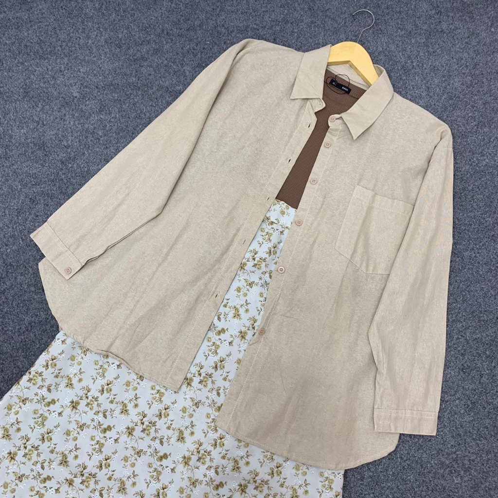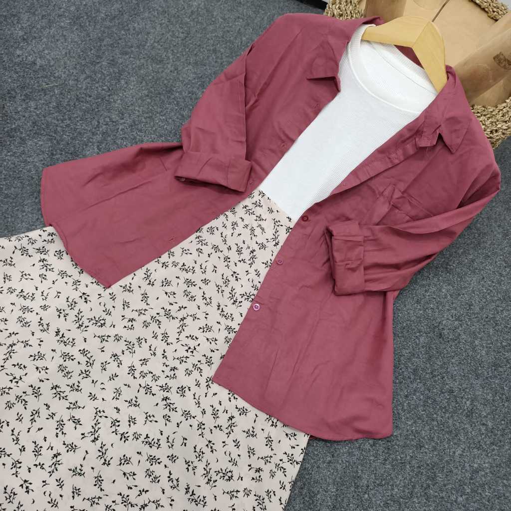 Setelan Oneset Linen + Kaos Rib Premium + Rok Floral Setelan Set Kemeja Linen 3In1 Paket Super Hemat