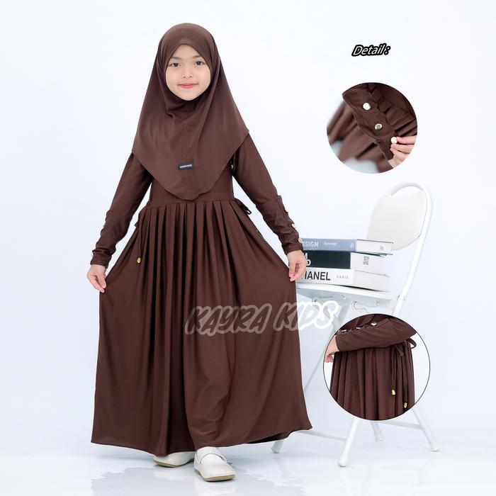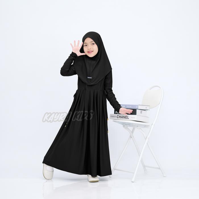 GAMIS ABAYA ANAK INARA SERUT PINGGANG USIA 0-9 TAHUN BAHAN JERSEY LEMBUT DAN ADEM FREE HIJAB MUSLIM PANJANG NYAMAN - HITAM, XS 0-1 TAHUN
